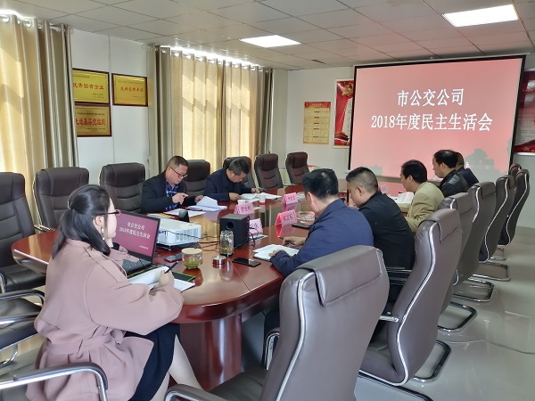 2019年3月18日,市公交公司召開(kāi)了“以強(qiáng)化創(chuàng)新理論武裝,樹(shù)牢‘四個(gè)意識(shí)’,堅(jiān)定‘四個(gè)自信’,勇于擔(dān)當(dāng)作為,以求真務(wù)實(shí)作風(fēng)堅(jiān)決把中央決策部署落到實(shí)處”為主題的民主生活會(huì)。黨委書(shū)記、董事長(zhǎng)張曉強(qiáng)主持會(huì)議,市公交公司全體領(lǐng)導(dǎo)班子和黨委委員參會(huì)。市國(guó)資委監(jiān)事會(huì)主席李世吉、副科級(jí)監(jiān)事羅全利到會(huì)指導(dǎo)。
